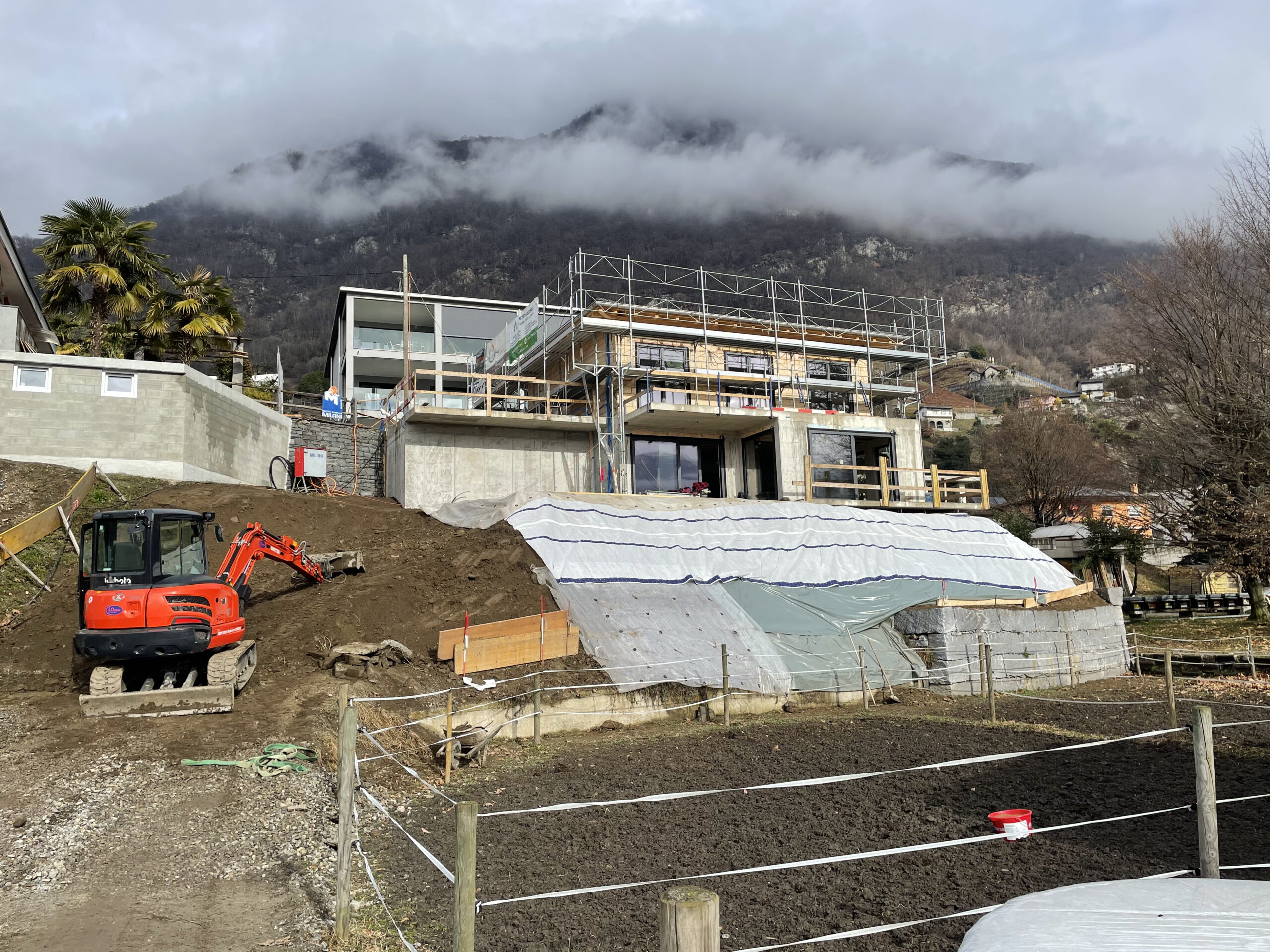 La committenza desiderava una casa che unisse praticità e sobrietà, con richiami all’architettura tradizionale ticinese. L’intervento ha preso forma a partire da un terreno particolarmente complesso, con un forte dislivello, che ha richiesto soluzioni strutturali importanti: l’edificio è stato in parte sollevato da terra grazie a pilastri interrati, integrati nel progetto per ottenere un’ottimale stabilità e sfruttare al meglio il sito.